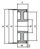 producent SIT wymiary 0 x 181,97 x 38 Waga 4,584 kg bo – szerokość paska [mm] 30 cecha z piastą cecha koło z obrzeżami cecha otwór pod Taper Lock E [mm] 192 H [mm] 125 liczba zębów [szt.] 72 materiał stal węglowa C45 / 1.0503 / AISI1045 S [mm] 181,97 typ produktu koło pasowe zębate W [mm] 38 współpracuje z Taper Lock 2517 Y [mm] 45 Z – głębokość [mm] 7 wykonanie 9 profil 8M R [mm] 183,35 U [mm] 158
