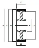 producent SIT wymiary 0 x 161,37 x 45 Waga 0 kg bo – szerokość paska [mm] 36 cecha bez piasty cecha koło z obrzeżami cecha otwór pod Taper Lock E [mm] 168 H [mm] 120 liczba zębów [szt.] 64 materiał żeliwo szare S [mm] 161,37 typ produktu koło pasowe zębate W [mm] 45 współpracuje z Taper Lock 2517 Y [mm] 45 wykonanie 7 profil 8M GTR ds [mm] 0 R [mm] 162,97 U [mm] 138