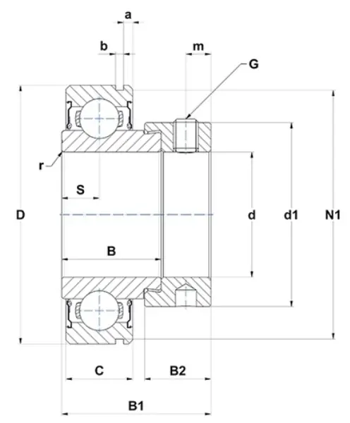 Rowek na pierścieniu zewnętrznym: N; tylko rowek
