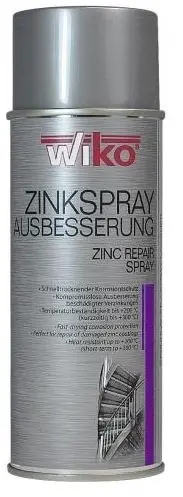 Spray cynkowy naprawczy Wiko 400 ml Opis produktu WIKO SPRAY CYNKOWY NAPRAWCZY jest mieszaniną cynku i aluminium. Tworzy odporną na wysoką wysokie temperatury warstwę ochronną. Pozwala na zabezpieczenie przed korozją wielu metali podstawowych. Doskonale przyczepny do żelaza i metali kolorowych. Właściwości