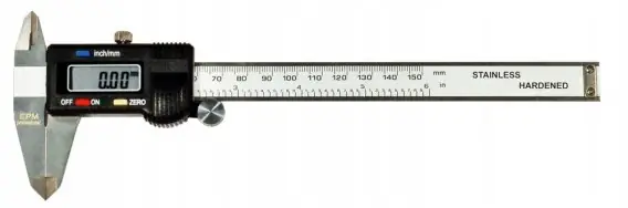 wysokość wyświetlacza 8mm zerowanie w dowolnym miejscu zakresu pomiarowego pomiar w milimetrach lub calach ręczne włączanie i wyłączanie wyświetlacza oraz automatyczne wyłączanie wyświetlacz ze specjalnego szkła kwarcowego, wysoka odporność na zarysowania wykonana z stali nierdzewnej hartowanej zakres 0 – 150 mm