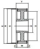 producent SIT wymiary 0 x 202,12 x 30 Waga 0 kg bo – szerokość paska [mm] 21 cecha z piastą cecha koło z obrzeżami cecha otwór pod Taper Lock E [mm] 216 H [mm] 160 liczba zębów [szt.] 80 materiał żeliwo szare S [mm] 202,12 typ produktu koło pasowe zębate W [mm] 30 współpracuje z Taper Lock 3020 Y [mm] 51 Z – głębokość [mm] 10,5 wykonanie 11 profil 8M GTR ds [mm] 0 R [mm] 203,72 U [mm] 178