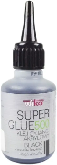 Klej Super Glue 500 Black Wiko Opis Kleje SPECJALNE WIKO SUPER GLUE to kleje sekundowe o podwyższonych parametrach, opracowane dla specyficznych wymagań, tam gdzie zastosowanie uniwersalnych klejów cyjanoakrylowych nie gwarantuje osiągnięcia optymalnych rezultatów. Kleje SPECJALNE WIKO SUPER GLUE są odporne na wilgoć oraz stabilne na przepuszczalnych podłożach, jak papier i tektura (nie wsiąkają). Właściwości